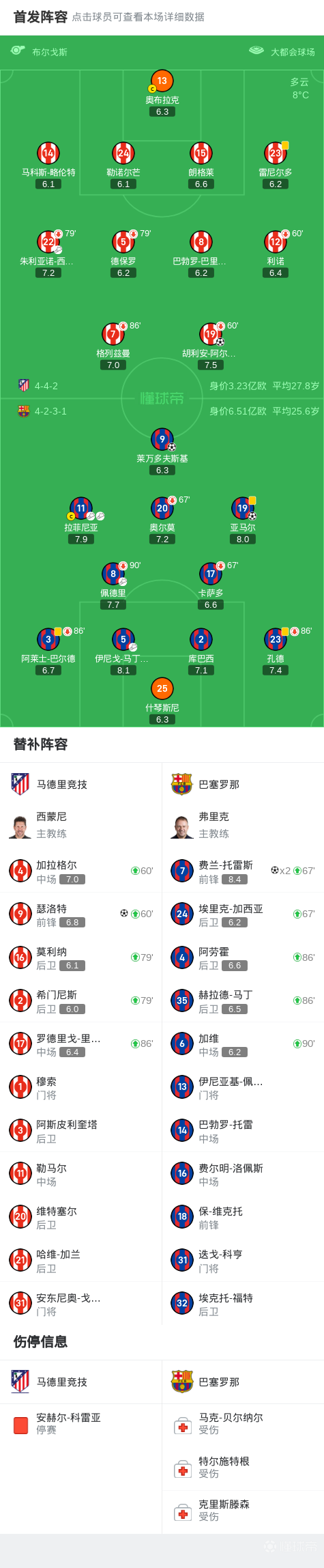 此役比赛的球队阵容与技术统计也彰显了双方的实力对比。巴塞罗那在场上展现出了出色的配合与默契,而马德里竞技则是在全力拼搏中尽力防守。比赛过程虽然激烈,但双方球迷也都看到了自己心目中的英雄。这场胜利对于巴塞罗那来说是极为重要的,而对于马德里竞技则是一次痛苦的教训。